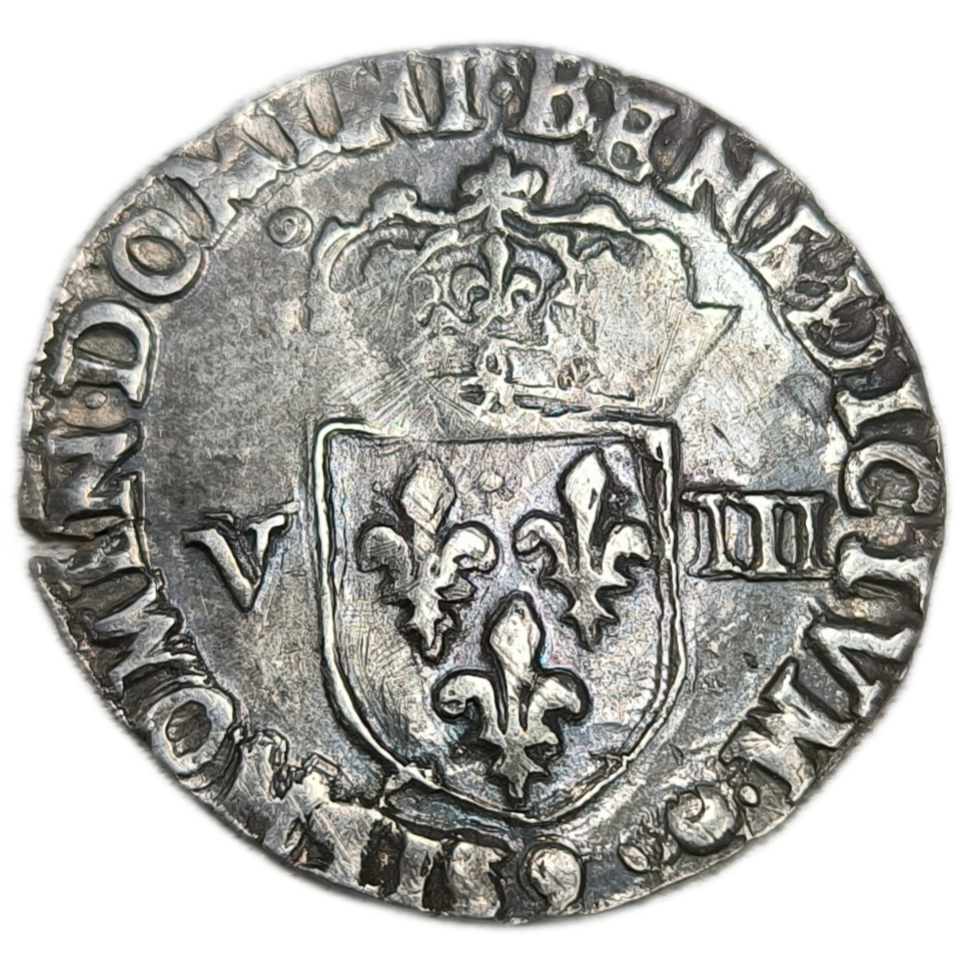 Produit précédent Produit suivant 80.00 € Poids : 4,87 g Diamètre : 26 mm Métal : Argent Année : 1587 Atelier : Rennes Qualité : TB+ 1 en stock quantité de Henri III, huitième d'écu à la croix de face 1587 Rennes Ajouter au panier UGS : 251927 Catégorie : Monnaies royales Produits similaires Monnaies royalesHenri IV, quart d’écu à la croix feuillue 1599 Bayonne 70.00 € Ajouter au panier Monnaies royalesCharles IX, teston, 2ème type 1563 La Rochelle 190.00 € Ajouter au panier Épuisé Monnaies royalesHenri III, double sol parisis, 2ème type 1585 Aix-en-Provence 95.00 € Lire la suite