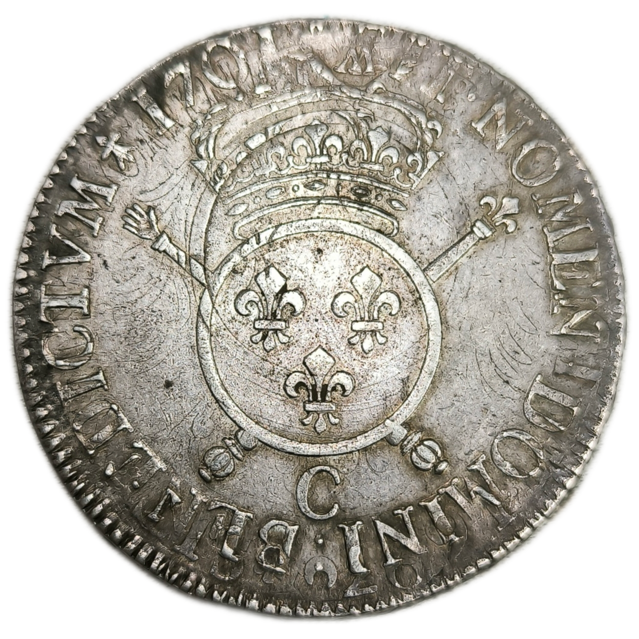 Produit précédent 400.00 € Poids : 26,99 g Diamètre : 41 mm Métal : Argent Année : 1701 Atelier : Caen Qualité : TTB 1 en stock quantité de Louis XIV, écu aux insignes 1701 Caen Ajouter au panier UGS : 251848 Catégorie : Monnaies royales Produits similaires Monnaies royalesLouis XV, demi-écu au bandeau 1764 Nantes 180.00 € Ajouter au panier Monnaies royalesLouis XV, tiers d’écu de France, flan neuf 172(2/1) Lille 160.00 € Ajouter au panier Monnaies royalesHenri III, demi-franc au col gaufré 1577 Paris 200.00 € Ajouter au panier