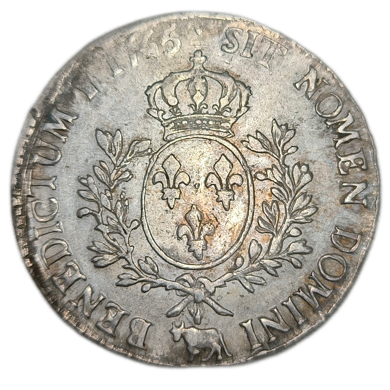 Produit précédent Produit suivant 100.00 € Poids : 29,15 g Diamètre : 41 mm Métal : Argent Année : 1765 Atelier : Pau Qualité : TB+ Rupture de stock UGS : 251742 Catégorie : Archives Produits similaires Épuisé ArchivesRutenes (région de Rodez), drachme au sanglier type de Fouzilhon 290.00 € Lire la suite Épuisé ArchivesNapoléon III, 1 franc tête laurée 1867 Paris 30.00 € Lire la suite Épuisé ArchivesLouis XV, demi-écu Vertugadin 1716 Troyes 200.00 € Lire la suite