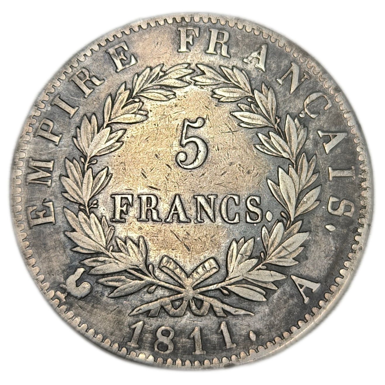 Produit précédent Produit suivant 120.00 € Poids : 24,79 g Diamètre : 37 mm Métal : Argent Année : 1811 Atelier : Paris Qualité : TTB Rupture de stock UGS : 262047 Catégorie : Archives Produits similaires Épuisé ArchivesLouis XV, demi-écu Vertugadin 1716 Troyes 200.00 € Lire la suite Épuisé ArchivesHenri III, huitième d’écu à la croix de face 1580 Rennes 30.00 € Lire la suite Épuisé ArchivesPhilippe IV, gros tournois à l’O rond 80.00 € Lire la suite